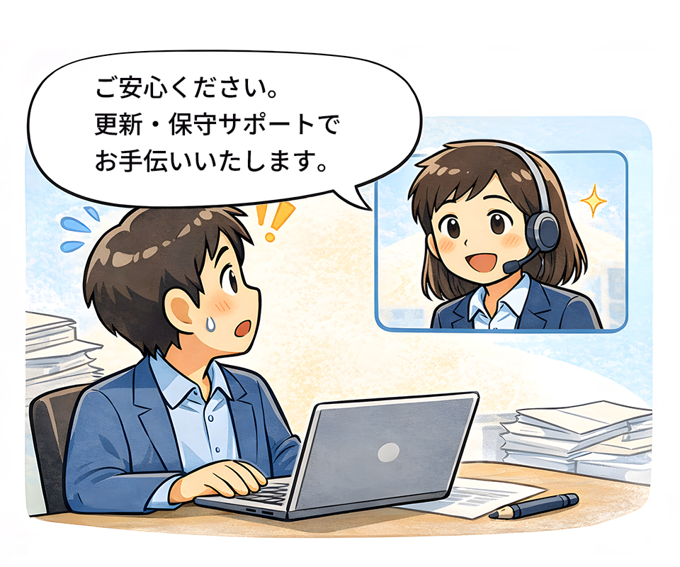 スタータープランでも、更新・保守サポートがつくので、運用までしっかり対応。
